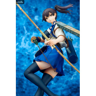 Kantai Collection est un jeu vidéo mobile où la guerre fait rage entre de jolies filles incarnant des navires de guerre. Kaga est en réalité un porte-avions et cette jolie brune est tout bonnement irrésistible. En plus, elle mélange les aspects futuristes et médiévales puisqu'elle est également armée d'un arc et de flèches. Cependant, même son carquois fait partie du porte-avions.