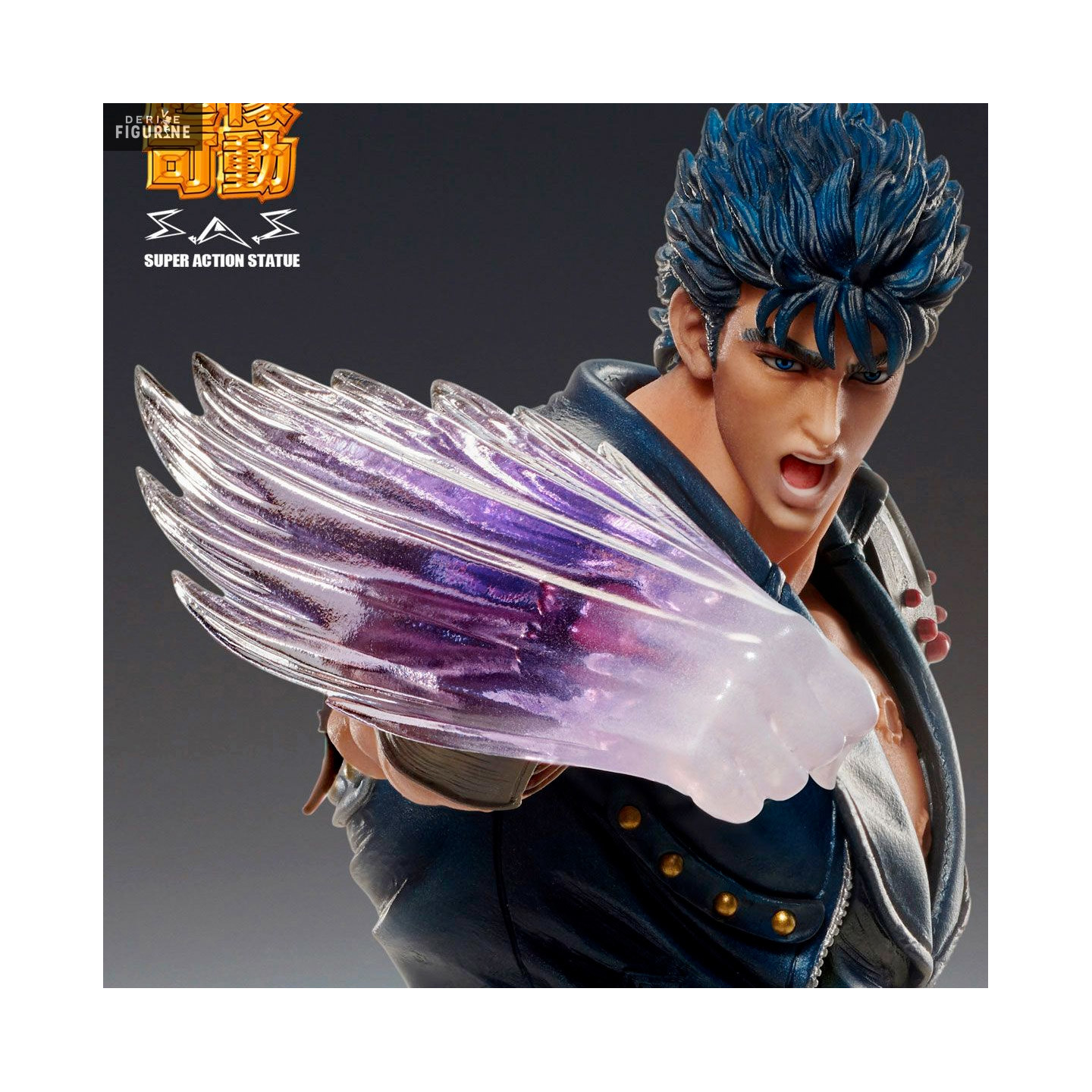 Figurine officielle de Kenshiro mesurant environ 17 centimètres de haut. Elle est issue de la collection Super Action. Le fabricant est Medicos Entertainment.