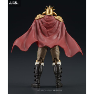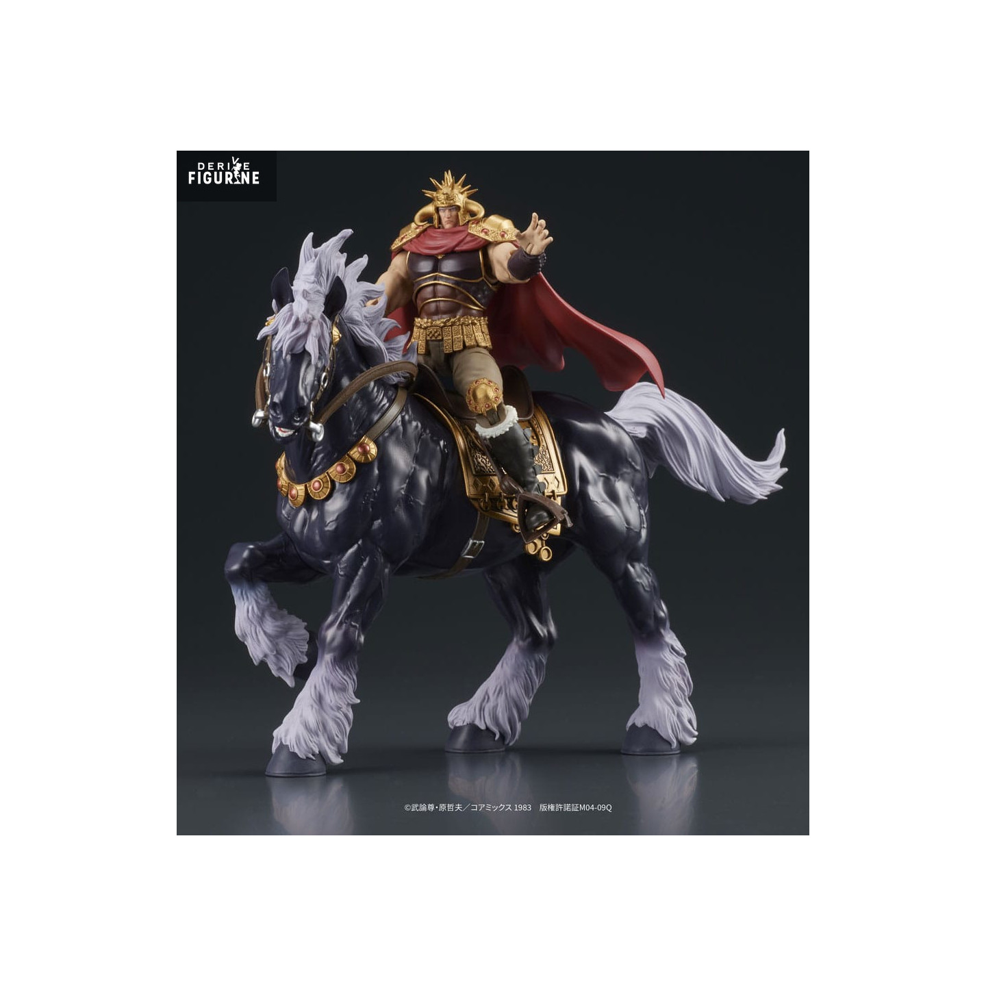 Plongez dans l'univers légendaire de Hokuto no Ken (Fist of the North Star) avec cette figurine impressionnante de Raoh et son fidèle destrier, Kukuoh. Représentant l'un des antagonistes les plus emblématiques de la série, Raoh est capturé ici dans toute sa majesté et sa puissance, dominant fièrement son cheval. Portant son armure dorée imposante et sa cape rouge flottante, Raoh illustre parfaitement sa volonté inébranlable et son désir de conquête. À ses côtés, Kukuoh, le puissant étalon noir orné de détails dorés, complète cette scène épique, incarnant la force brute et la loyauté.