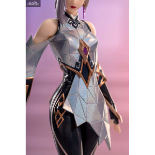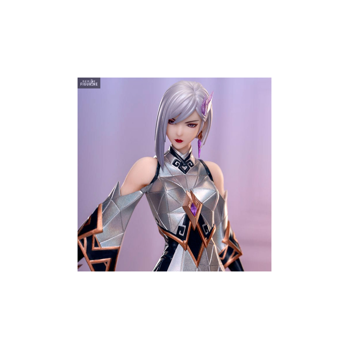 Jing est une très belle femme que vous pouvez retrouver dans le jeu Honor of Kings. Elle porte une tenue noire et argentée avec une pierre violette au centre de sa poitrine, qui est assortie à ses boucle d'oreilles et la barrette dans ses cheveux. Elle a aussi son arme dans la main droite, ce qui nous rappelle qu'elle est tout de même une combattante très redoutable.
