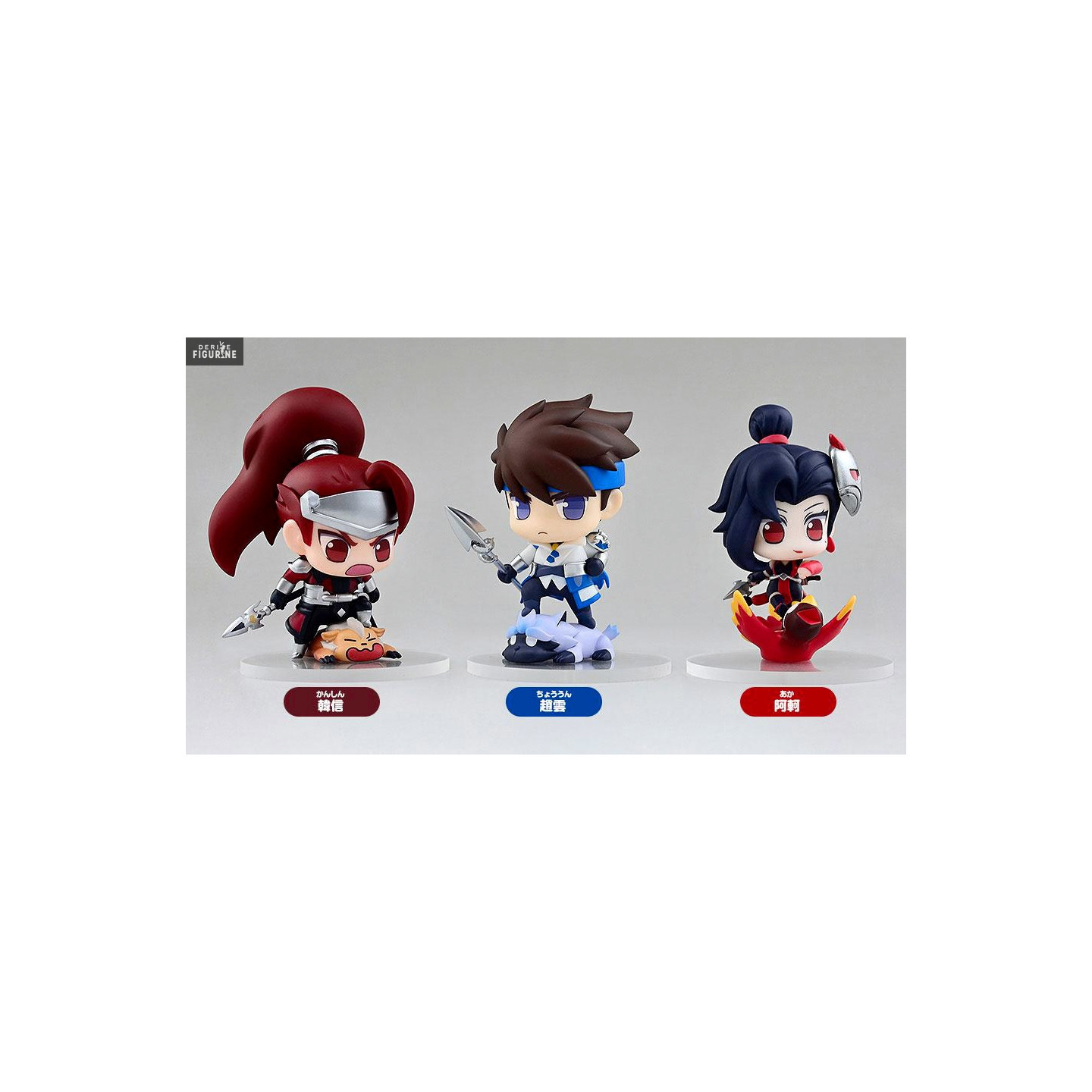 Figurines officielles de Han Xin, Zhao Yun et A Ke mesurant environ 7 centimètres. Elles sont issues de la collection Qset. Le fabricant est Good Smile Company.