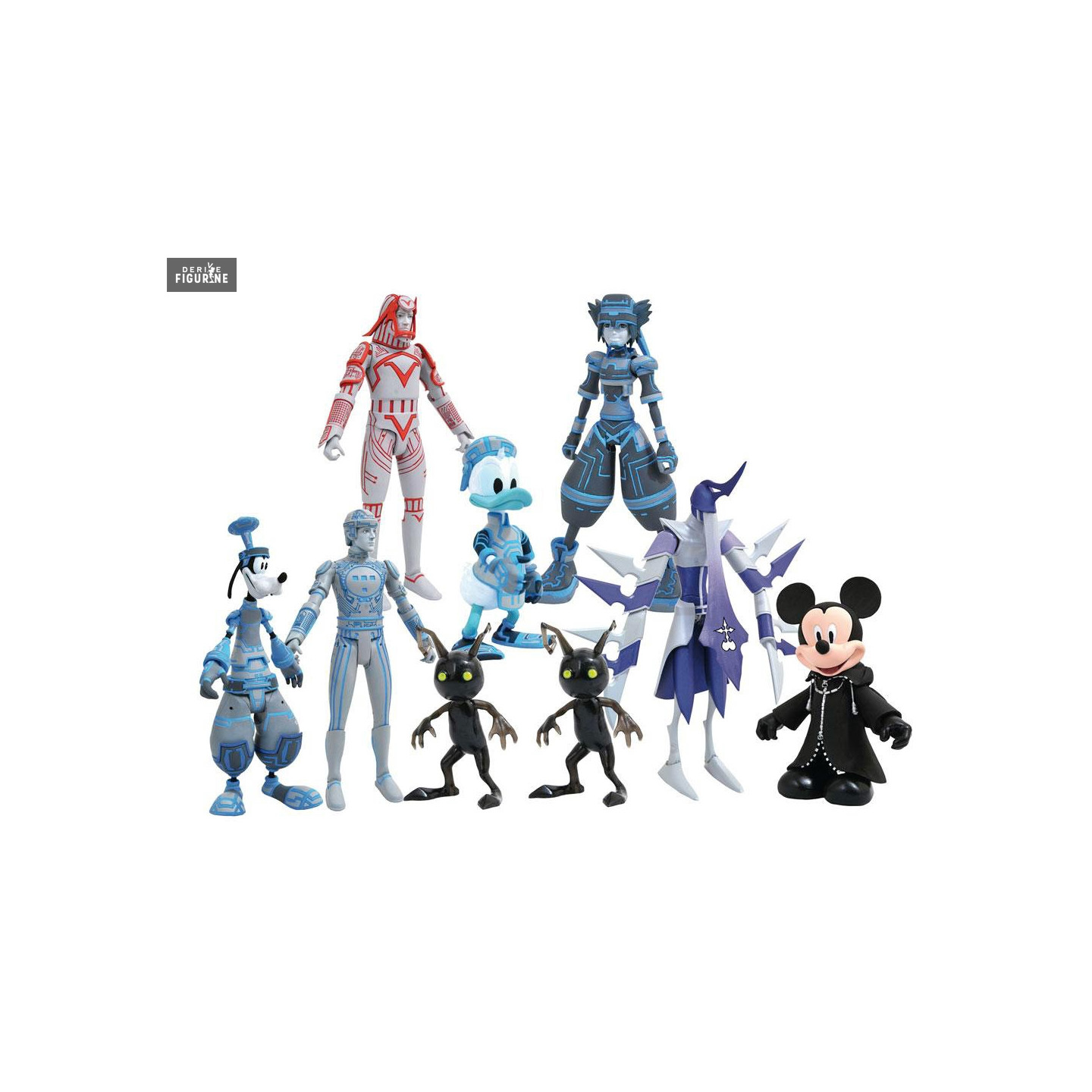 Figurines officielles de Kingdom Hearts (voir détails en description) mesurant environ entre 5 et 18 centimètres de haut. Elles sont issues de la collection Kingdom Hearts Select. Le fabricant est Diamond Select Toys.