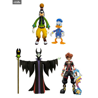 Si vous êtes un grand fan de la série Kingdom Hearts, vous allez être très heureux de voir ses quatre figurines. Nous avons donc le grand Dingo et le petit Donald, ainsi que la méchante Maléfique et pour finir le héros : Sora et sa Keyblade.