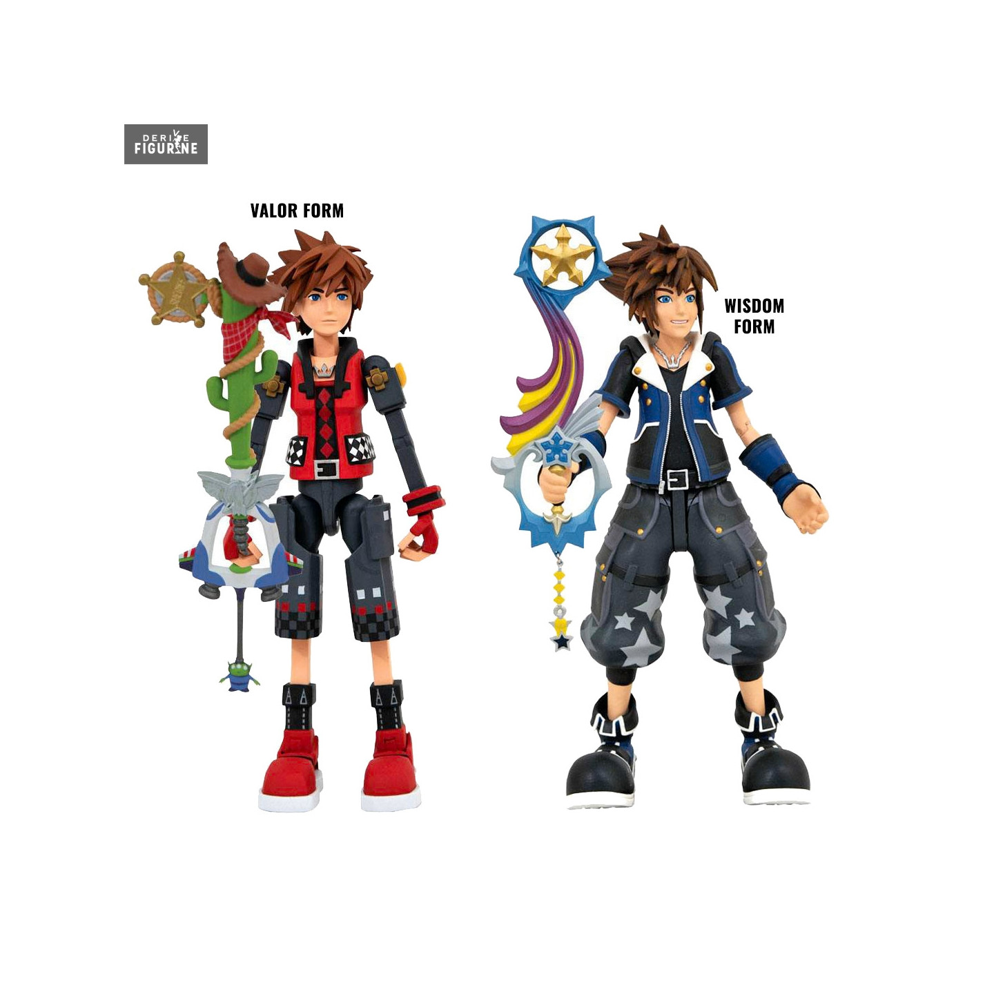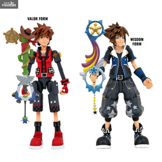 Deux versions de Sora, le héros des Kingdom Hearts viennent d'arriver. Vous avez le choix entre la Valor Form (ou forme Vaillance) où il tient la Keyblade Shérif de l'Ouest, trouvée dans le coffre à jouets (Toy Story), ou la Wisdom Form (ou forme Sagesse) avec la Keyblade étoile filante (shooting star) dans les mains. Vu que les figurines ont plus d'une quinzaine d'articulations, vous allez pouvoir lui faire revivre des combats dignes du jeu vidéo.