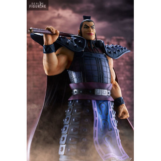 Ou Ki, l'un des Six Grands Généraux de Qin, est représenté dans une pose majestueuse, mettant en avant sa stature imposante et son armure distinctive. La figurine est minutieusement détaillée, recréant fidèlement les tatouages tribaux sur son bras, ses piercings, et les multiples cicatrices témoignant de ses nombreuses batailles.