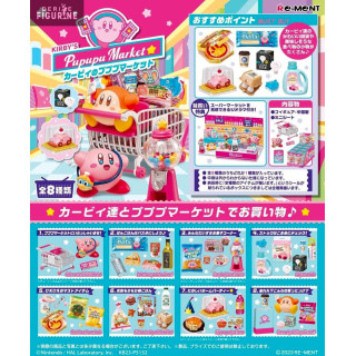 Figurine officielle aléatoire ou pack complet de Kirby en PVC d'environ 5-7 centimètres de haut. Elle est issue de la collection Pupupu Market. Le fabricant est Re-Ment.