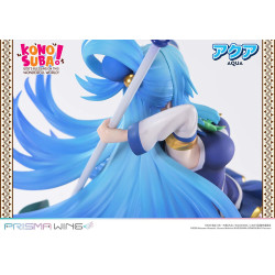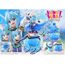 Aqua, la déesse de l’eau de KonoSuba: Sois béni, monde merveilleux !, n’est pas toujours très sérieuse, mais elle sait se faire remarquer. Sur cette figurine officielle en PVC à l’échelle 1/7, d’environ 15 x 22 x 24 cm, on la retrouve en plein vol, comme emportée par sa propre magie. La pièce fait partie de la collection Prisma Wing et est produite par Prime 1 Studio, avec un format assez imposant pour devenir le centre de ta déco KonoSuba.