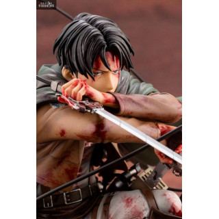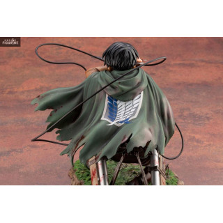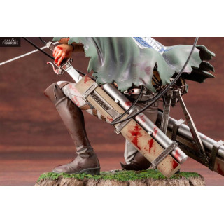 Figurine officielle de Levi en PVC mesurant environ 17 centimètres de haut, à l'échelle 1/7. Le fabricant est Kotobukiya.