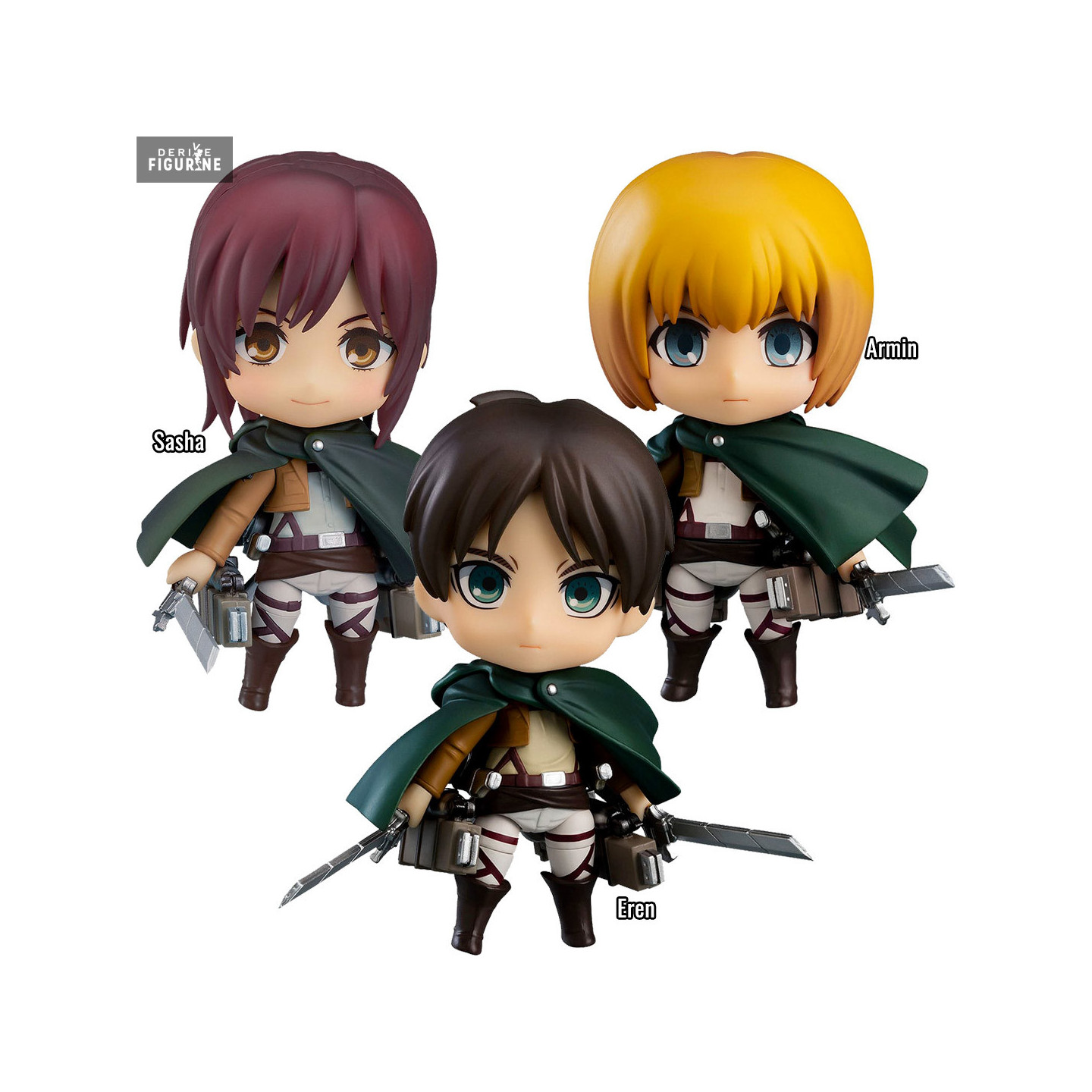 Figurine officielle au choix entre Eren Yeager, Armin Arlert ou Sasha Braus en PVC mesurant environ 10 centimètres de haut. Elle est issue de la collection Nendoroid. Le fabricant est Good Smile Company.