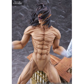 La sculpture détaillée met en lumière la puissance brute de l'Attack Titan, avec Eren figé dans une pose dynamique, prêt à affronter ses redoutables ennemis. Les proportions impressionnantes de la figurine reflètent la colossalité du Titan, créant une présence imposante qui ne manquera pas d'attirer l'attention dans toute collection.