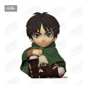 Figurine tirelire officielle de Eren en PVC mesurant environ 15 centimètres de haut. Le fabricant est Plastoy.