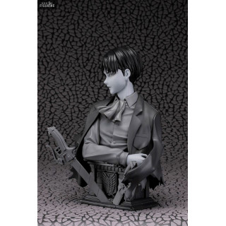 Dans l'anime et manga L'Attaque des Titans, Levi, froid, ténébreux, strict et sans pitié est un patrouilleur menant sa propre escouade ! Ici, il est représenté avec une statuette buste décor proposant une version grise du personnage, la classique. Dans celle-ci, toute la noirceur du personnage ressort parfaitement. Pour la version couleur, elle est extrêmement fidèle au personnage et on dirait qu'il vient tout droit de l'anime. Alors, quelle version préférez-vous ?