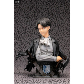 Figurine officielle de Levi version classique (gris) ou couleur en PMMA mesurant environ 25 centimètres de haut, à l'échelle 1/3. Le fabricant est Fots Japan.