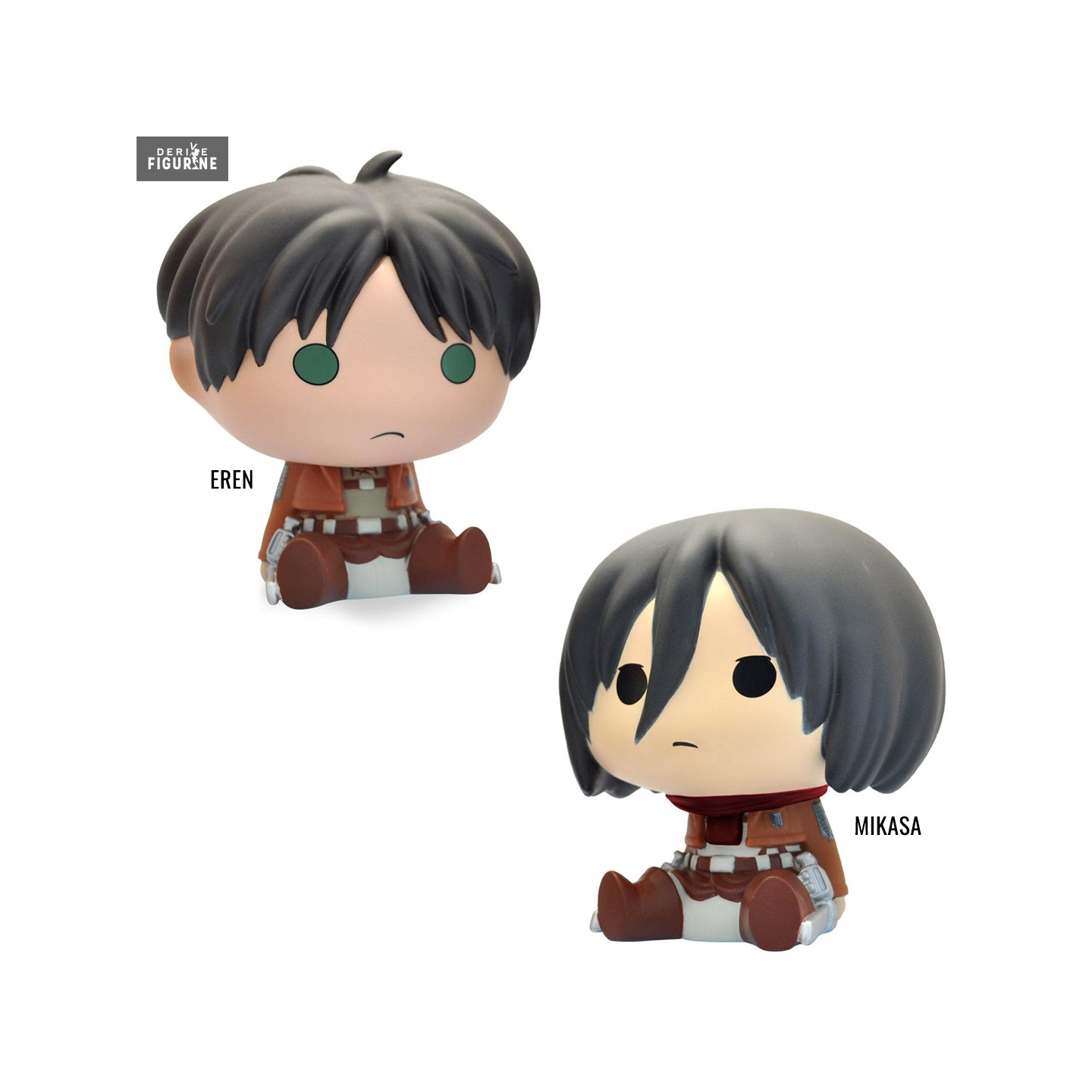 Deux personnages de l'Attaque des Titans sont de sortie dans des versions chibi, c'est-à-dire petites, avec des grosses têtes et un style mignon. Ce sont des tirelires, mais il vous faut choisir entre Eren Jäger, ou Mikasa Ackerman.