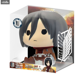 Tirelire officielle au choix entre Eren ou Mikasa en PVC mesurant environ 16 centimètres de haut. Le fabricant est Plastoy.