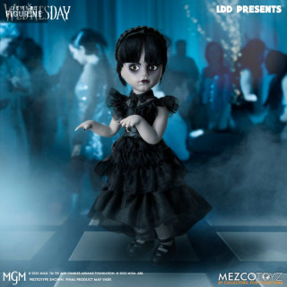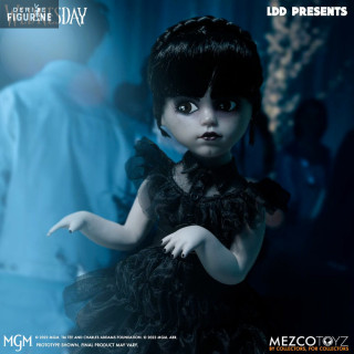 Figurine officielle de Mercredi mesurant environ 25 centimètres de haut. Elle est issue de la collection Living Dead Dolls. Le fabricant est Mezco Toys.
