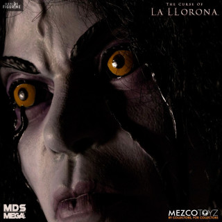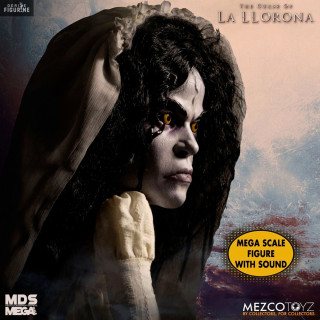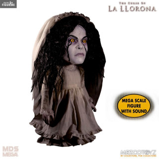 Figurine officielle et parlante de La Llorona mesurant environ 38 centimètres de haut. Le fabricant est Mezco Toys.