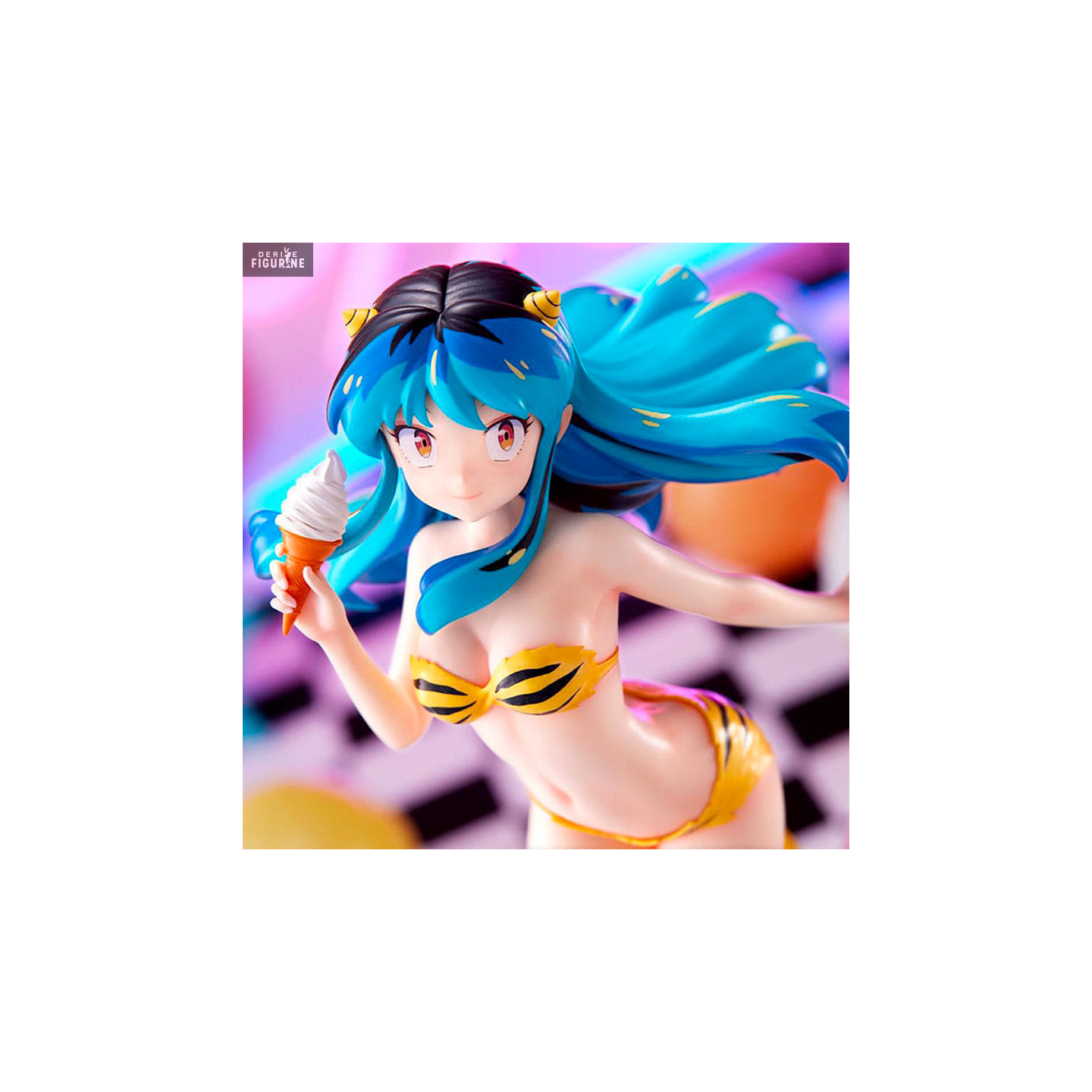 Urusei Yatsura met en scène le peuple extraterrestre des Oni dont la figurine présentée ce jour fait partie puisqu'il s'agit de la belle et irrésistible Lum dans la gamme des ARTFX. Lum est donc tombé amoureuse du héros Ataru et cela donne lieu à des histoires complètement folles. Lum est ici sur un socle décor sympathique et avec une glace à la main.