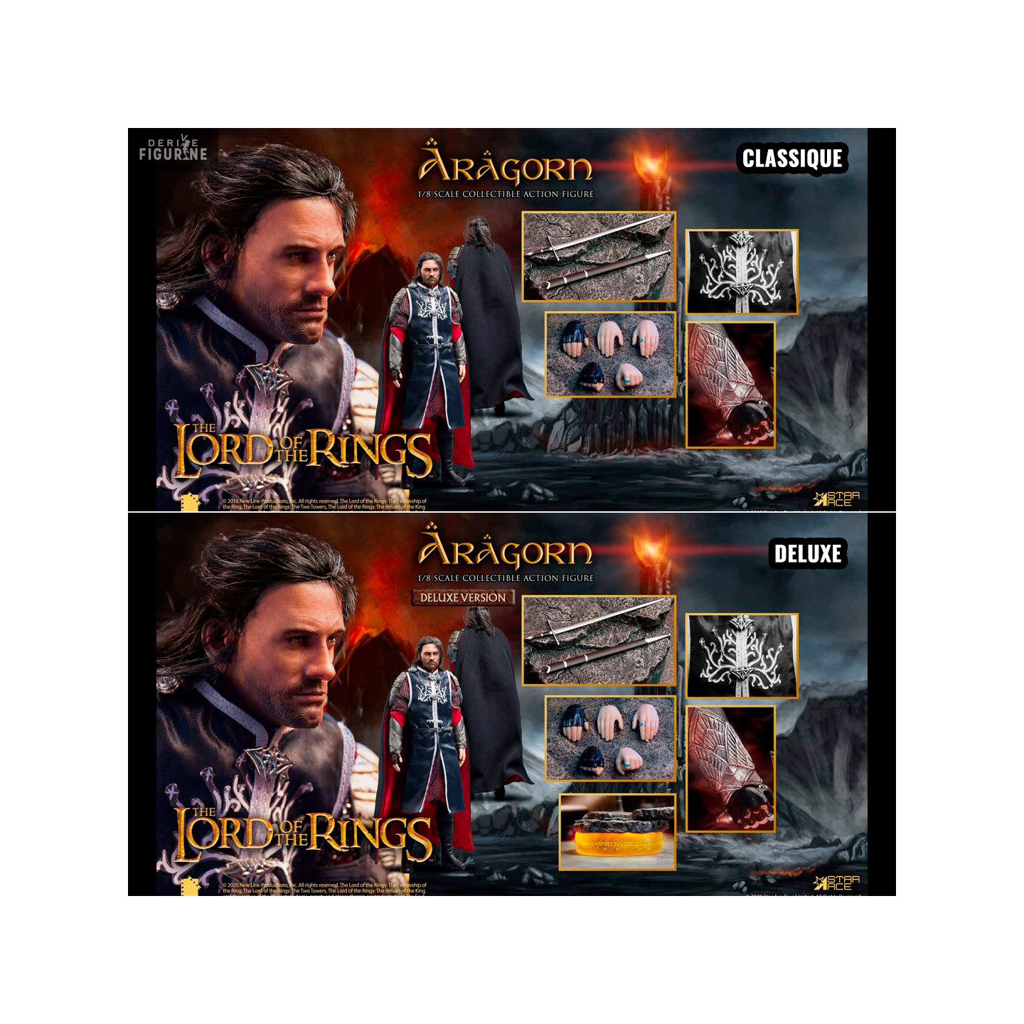 Figurine officielle de Aragorn au choix entre la version Classique ou Deluxe mesurant environ 23 centimètres de haut, à l'échelle 1/8. Elle est issue de la collection Real Master Series. Le fabricant est Star Ace.