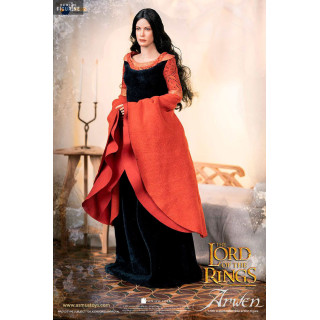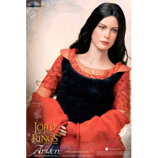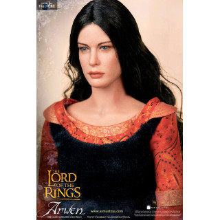 Figurine officielle de Arwen in Death Frock mesurant environ 25 centimètres de haut, à l'échelle 1/6. Le fabricant est Asmus Collectible.