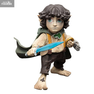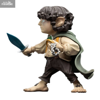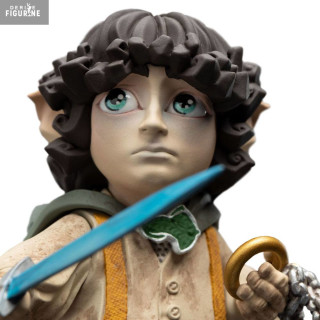 Figurine officielle de Frodo Baggins en vinyle mesurant environ 8,6 x 10,9 x 10,5 centimètres. Elle est issue de la collection Mini Epics. Le fabricant est Weta Workshop.