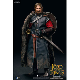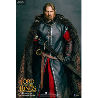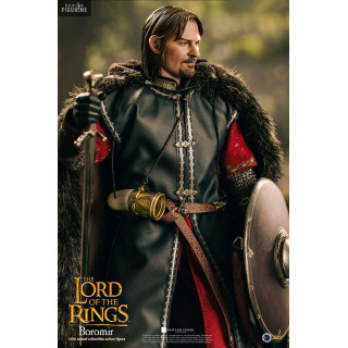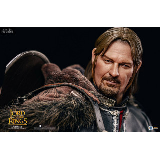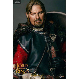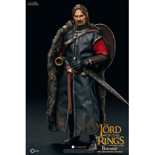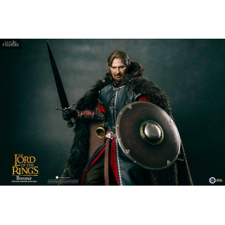 Figurine officielle de Boromir mesurant environ 30 centimètres de haut à l'échelle 1/6. Le fabricant est Asmus Collectible.