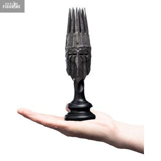 Le Roi-Sorcier d’Angmar, Chef des Nazgûl, se dévoile ici dans une interprétation Alternative Concept signée Weta Workshop. Cette sculpture en résine présente son heaume emblématique, prolongé par une couronne de pointes effilées qui évoquent la terreur qu’il inspire. Les lignes acérées et les reliefs usés restituent l’aspect militaire et surnaturel de son armure, comme si le mal ancien du Mordor avait corrodé chaque recoin de ce casque maudit.