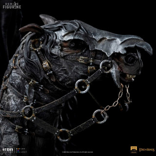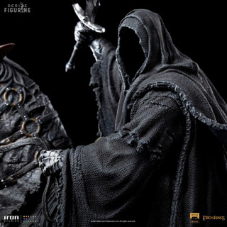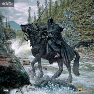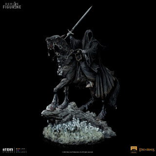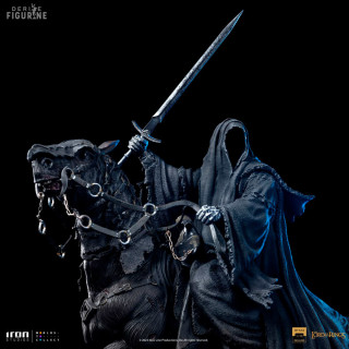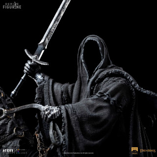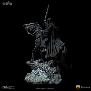 Figurine officielle de Nazgul on Horse en résine mesurant environ 42 centimètres de haut, à l'échelle 1/10. Elle est issue de la collection Art Scale. Le fabricant est Iron Studios.