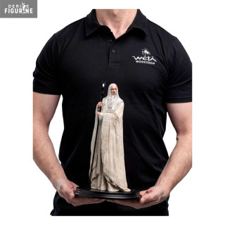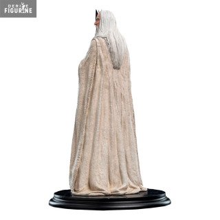 Figurine officielle de Saruman en résine mesurant environ 20,5 x 33,5 x 20,5 centimètres, à l'échelle 1/6. Le fabricant est Weta Workshop.