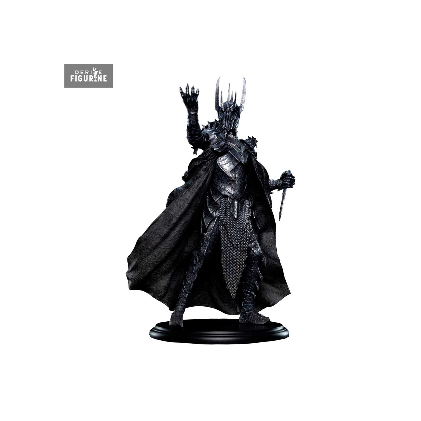 Figurine officielle de Sauron en résine mesurant environ 13 x 20,5 x 8 centimètres. Le fabricant est Weta Workshop.