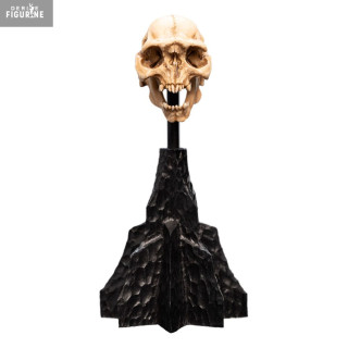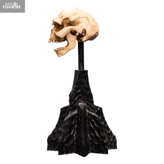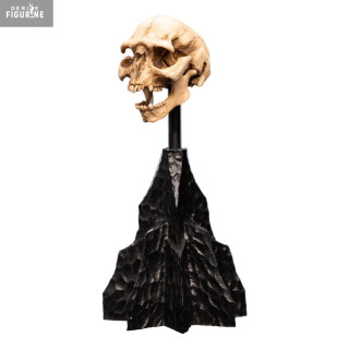 Le crâne est monté sur un socle noir texturé, conçu pour rappeler les environnements sombres et rocheux des cavernes de la Moria. Ce socle ajoute une touche de sophistication et de mystère à l'ensemble, faisant de cette réplique une pièce de collection impressionnante et saisissante.