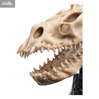 La réplique Skull of Fell Beast est sculptée avec une attention minutieuse aux détails, capturant parfaitement les caractéristiques uniques du crâne. Les orbites béantes, les narines proéminentes et les dents acérées sont rendues avec une grande précision, offrant une représentation fidèle à l'original utilisé dans les films. Le polystone, matériau réputé pour sa durabilité et sa capacité à reproduire des détails fins, assure que chaque aspect de cette réplique est authentique et détaillé.