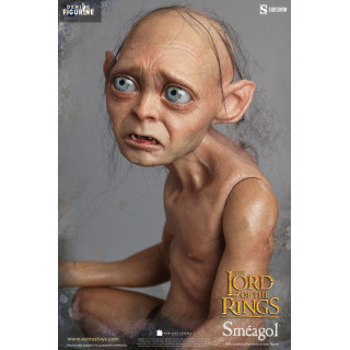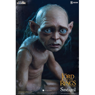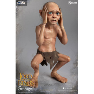 Figurine officielle de Sméagol mesurant environ 20 centimètres de haut, à l'échelle 1/6. Le fabricant est Asmus Collectible.