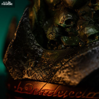 Réalisée en résine à l’échelle 1/10, cette pièce signée Iron Studios mesure environ 31 cm de haut et regorge de détails sublimes. Le socle sculpté représente les ruines hantées des Montagnes Blanches, couvertes de crânes et de visages figés dans la pierre. La posture d’Aragorn est à la fois noble et menaçante : son regard déterminé, Andúril levée, et la flamme de la torche jetant une lumière dramatique sur l’ensemble.