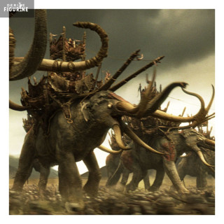 Dans les vastes plaines de la Terre du Milieu, les redoutables Créatures de l’Orient, dont les Mûmakil, faisaient trembler les armées par leur taille colossale et leur force brute. Ce crâne de Mûmak, vestige macabre de ces éléphants de guerre, évoque les batailles épiques où chaque pas de la bête pesait sur le destin des royaumes libres.