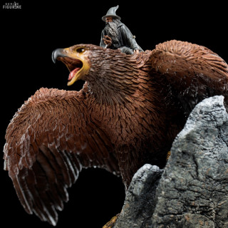 Gandalf a dit un jour que Gwaihir l'avait porté par trois fois. Nous avons la preuve pour l'une de ces fois représentée sur cette figurine. Gwaihir est une créature majestueuse et il est d'ailleurs considéré comme le roi des aigles.