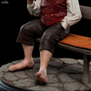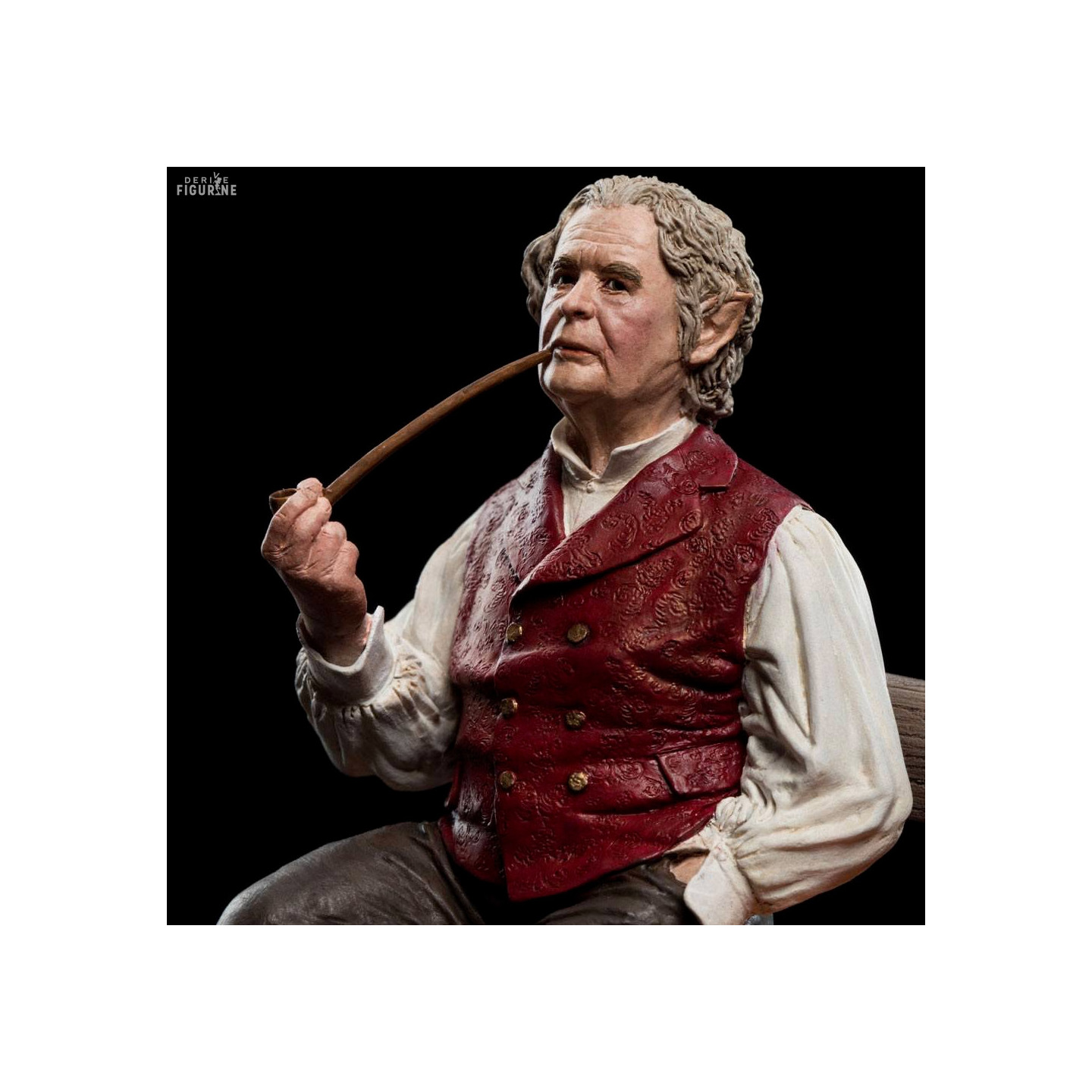 Figurine officielle de Bilbo Baggins en résine mesurant environ 10,6x10,5x10,6 centimètres. Le fabricant est Weta Workshop.