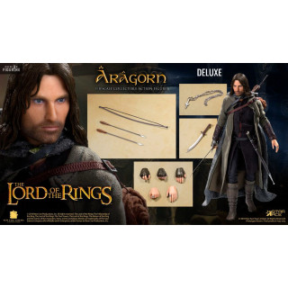 Figurine officielle de Aragorn au choix entre la version Regular ou Deluxe mesurant environ 23 centimètres de haut, à l'échelle 1/8. Elle est issue de la collection Real Master Series. Le fabricant est Star Ace.