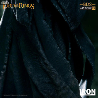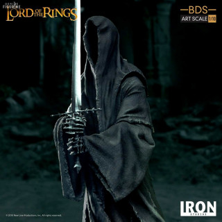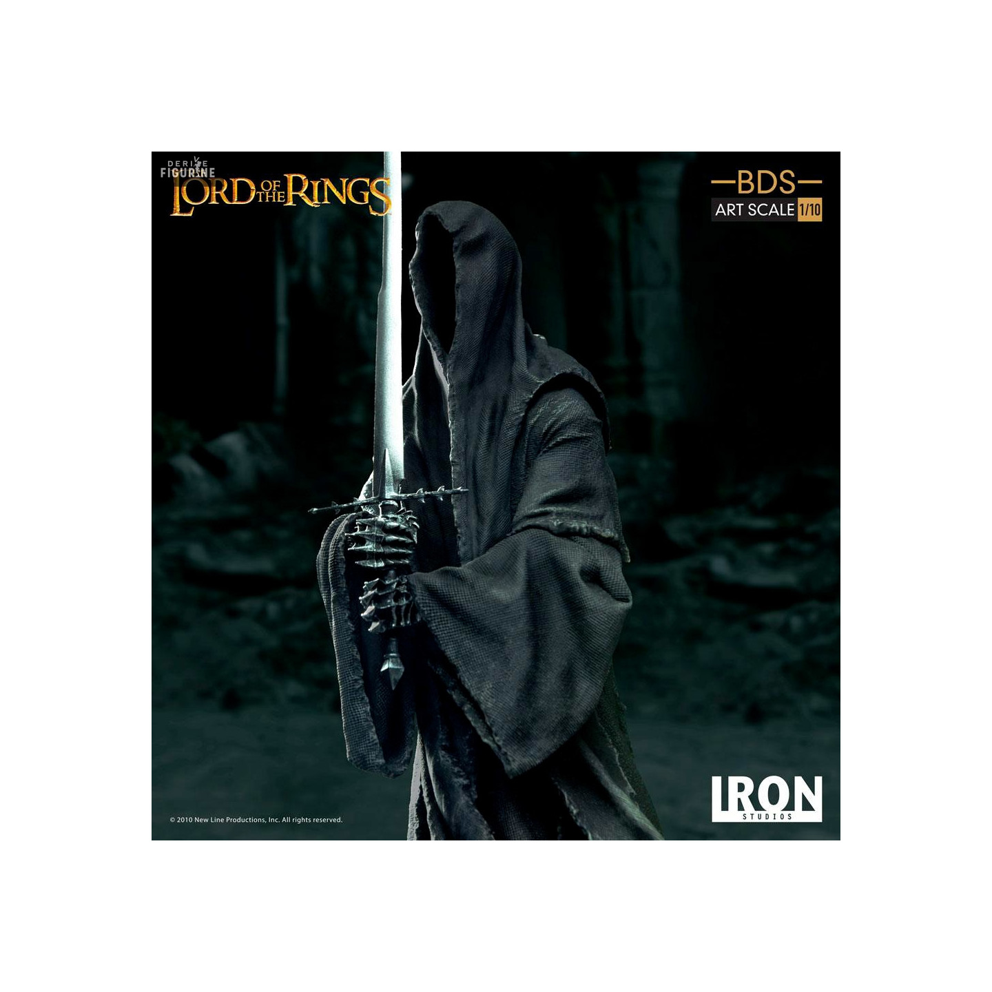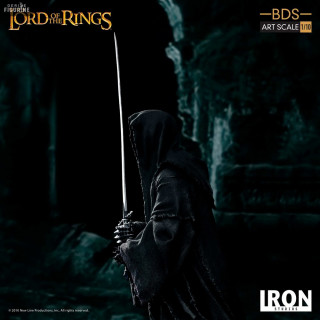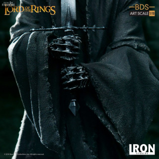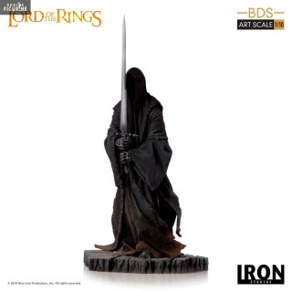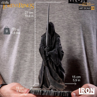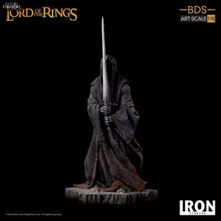Figurine officielle de Nazgul en résine mesurant environ 27 centimètres de haut, à l'échelle 1/10. Le fabricant est Iron Studios.
