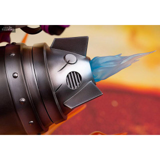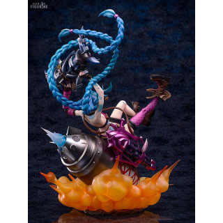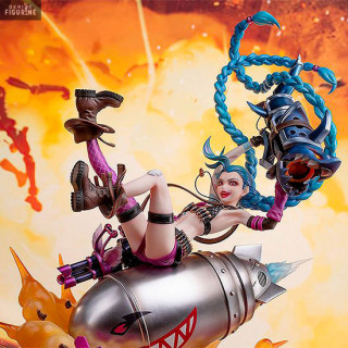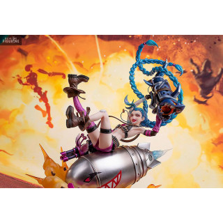 Dans le jeu vidéo compétitif League of Legends, la belle et déjantée Jinx est une criminelle complètement imprévisible et dangereuse ! Son but est de semer le chaos dans n'importe quelle situation et pour cela, elle dispose d'armes lui permettant de tout faire exploser de partout ! C'est donc la meilleure des humeurs possibles qu'on la voit ici sur le dos d'une roquette prête à tout faire sauter !