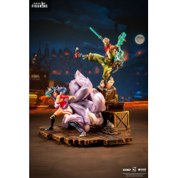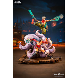Figurine officielle de 2XKO Ekko & Ahri en résine mesurant environ 27 x 23 x 30 centimètres de haut, à l'échelle 1/10. Le fabricant est Pure Arts.