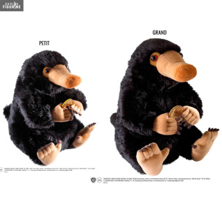 Peluche représentant Niffleur grand (33 cm) ou petit (23 cm) en polyester. Le fabricant est Noble Collection.