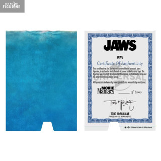 Figurine officielle de Jaws (50th Anniversary) en PVC mesurant environ 16 centimètres de haut. Elle est issue de la collection Movie Maniacs. Le fabricant est McFarlane Toys.