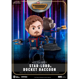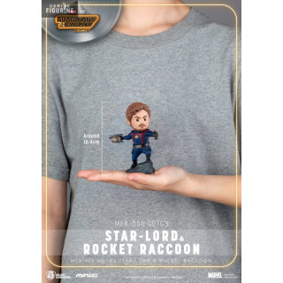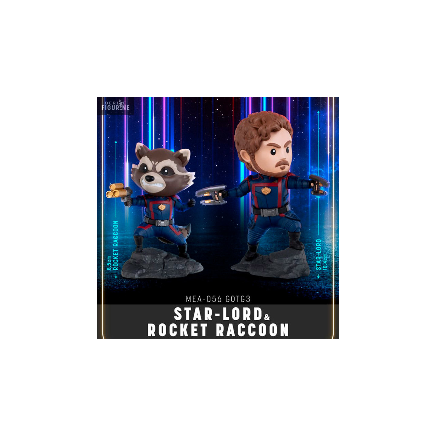 Figurines officielles de Star Lord (~ 10 cm) et Rocket Raccoon (~ 8 cm) en PVC. Elles sont issues de la collection Mini Egg Attack. Le fabricant est Beast Kingdom.