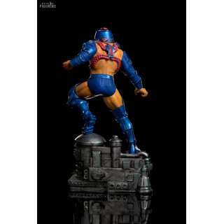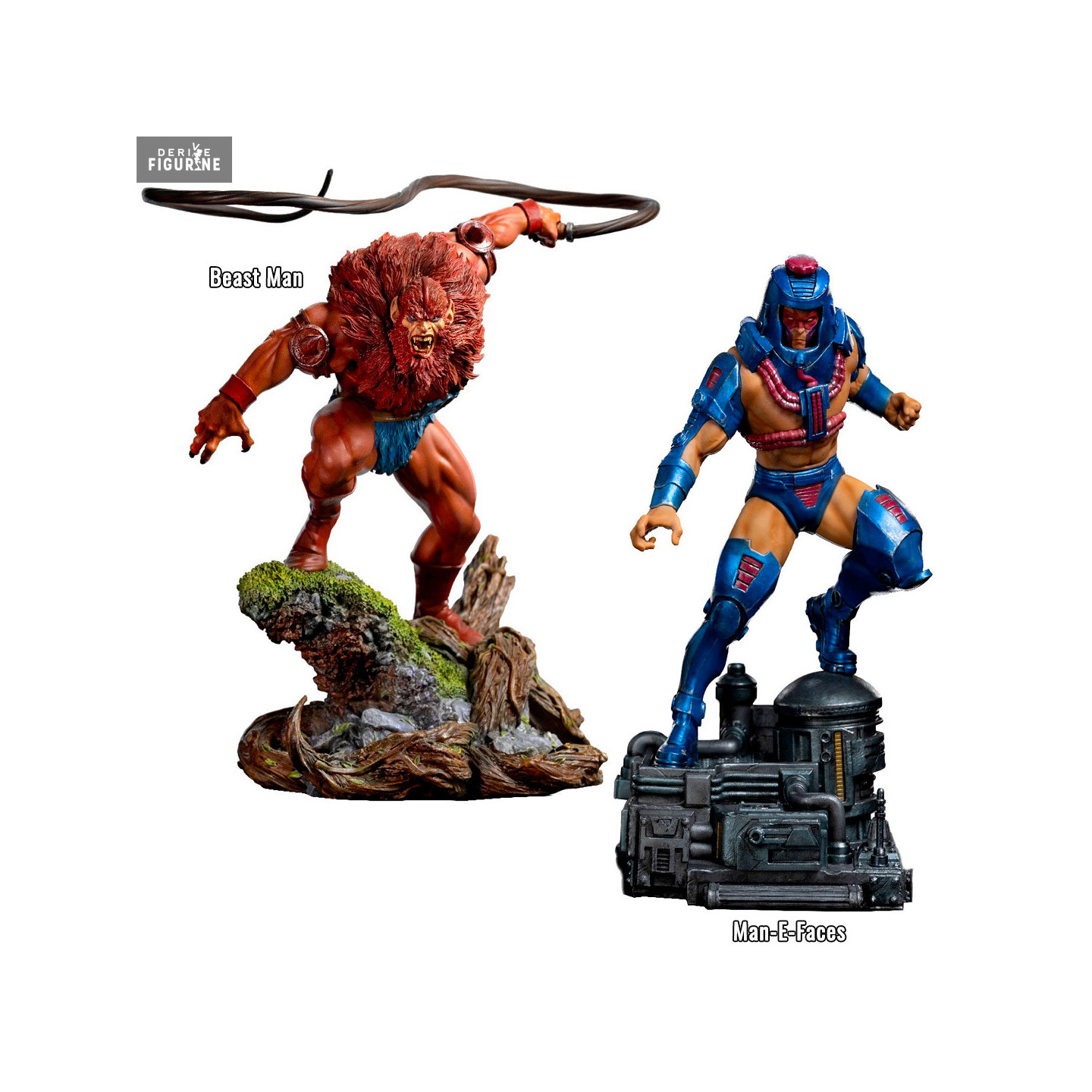 Figurine officielle au choix de Beast Man (23 cm) ou Man-E-Faces (25 cm) en résine à l'échelle 1/10. Elle est issue de la collection Art Scale. Le fabricant est Iron Studios.