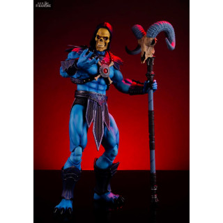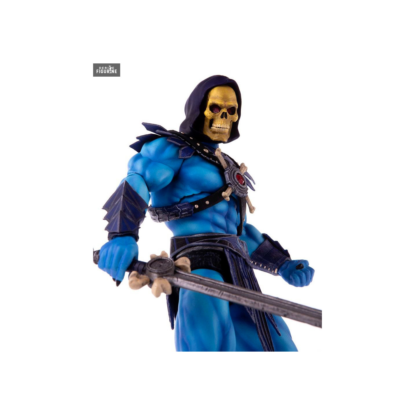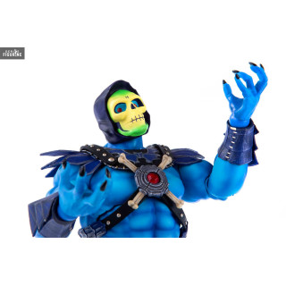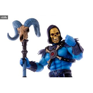 Figurine officielle de Skeletor en PVC mesurant environ 30 centimètres de haut, à l'échelle 1/6. Le fabricant est Mondo.