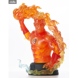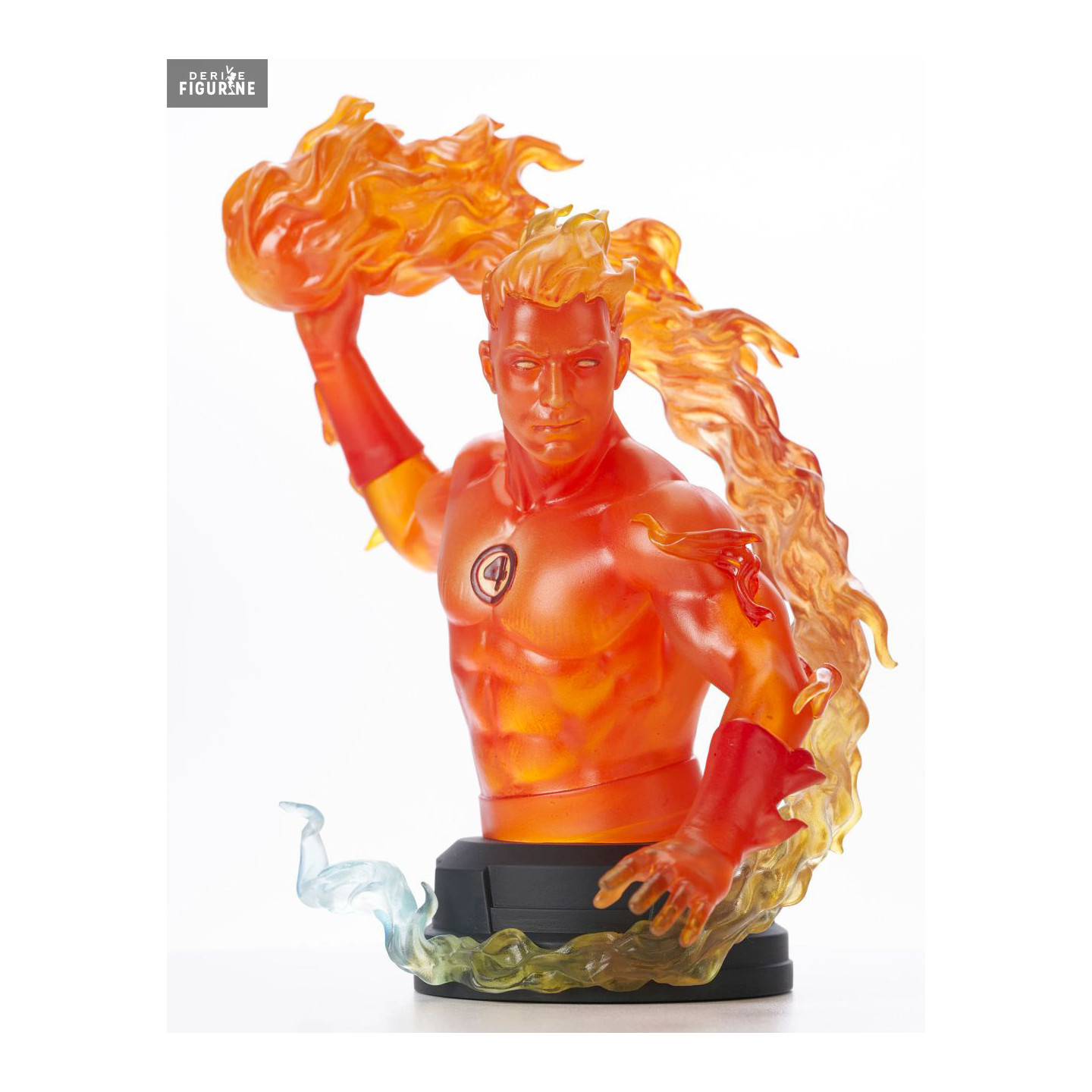 Buste officiel de Human Torch en résine mesurant environ 18 centimètres de haut. Le fabricant est Diamond Select Toys.