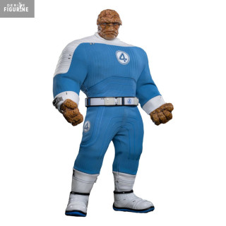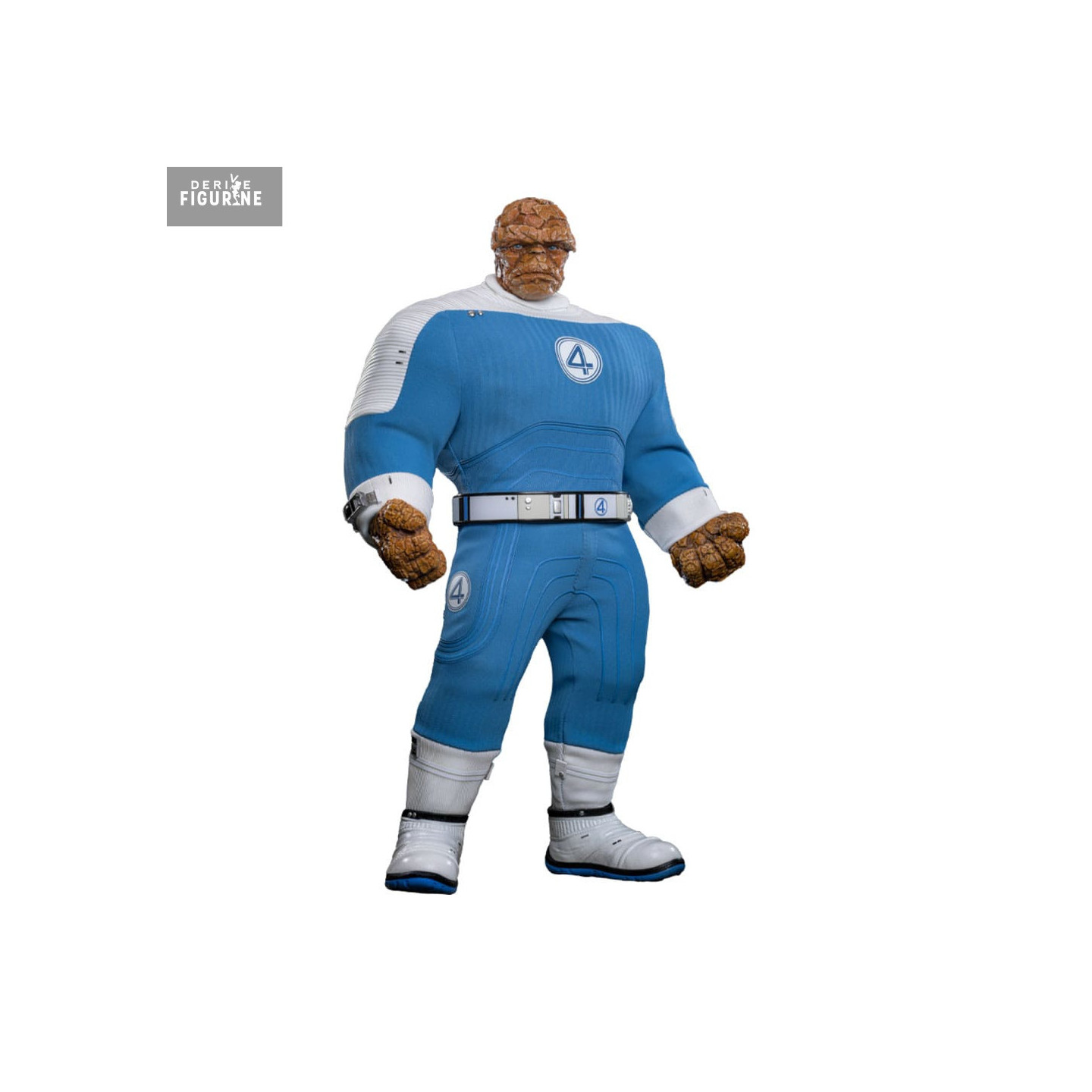 Cette figurine de 31 cm restitue avec réalisme la silhouette massive et la texture minérale de The Thing. Chaque fissure, chaque éclat de roche sur sa peau est sculpté avec un soin impressionnant, offrant un rendu fidèle à l’apparence du personnage dans le film. La combinaison bleue du costume est parfaitement ajustée et peut être partiellement retirée (torse amovible), pour exposer sa morphologie unique.