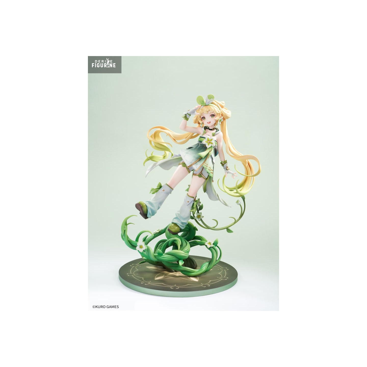 Le socle travaillé met en scène des lianes et des fleurs qui s’élancent en spirale pour la soutenir, accentuant l’effet de flottement et renforçant l’identité végétale de Verina. L’ensemble se distingue par un équilibre visuel élégant entre la douceur du personnage et la dynamique des éléments naturels.