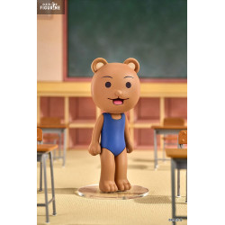La figurine représente Kumakichi dans sa tenue emblématique : un simple maillot de bain une pièce bleu marine, qui ajoute un niveau d’absurdité au design déjà improbable. Son expression ouverte, yeux ronds et langue sortie, dégage une bonne humeur étrange, presque trop calme pour être honnête.